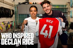 暖男赖斯邀请小球童参观训练中心,并送出签名球衣和战靴